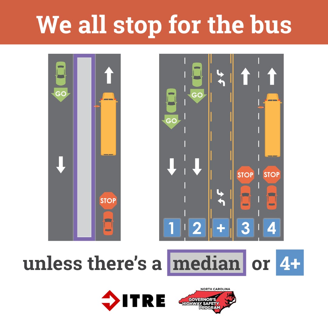 When to stop for a school bus in North Carolina